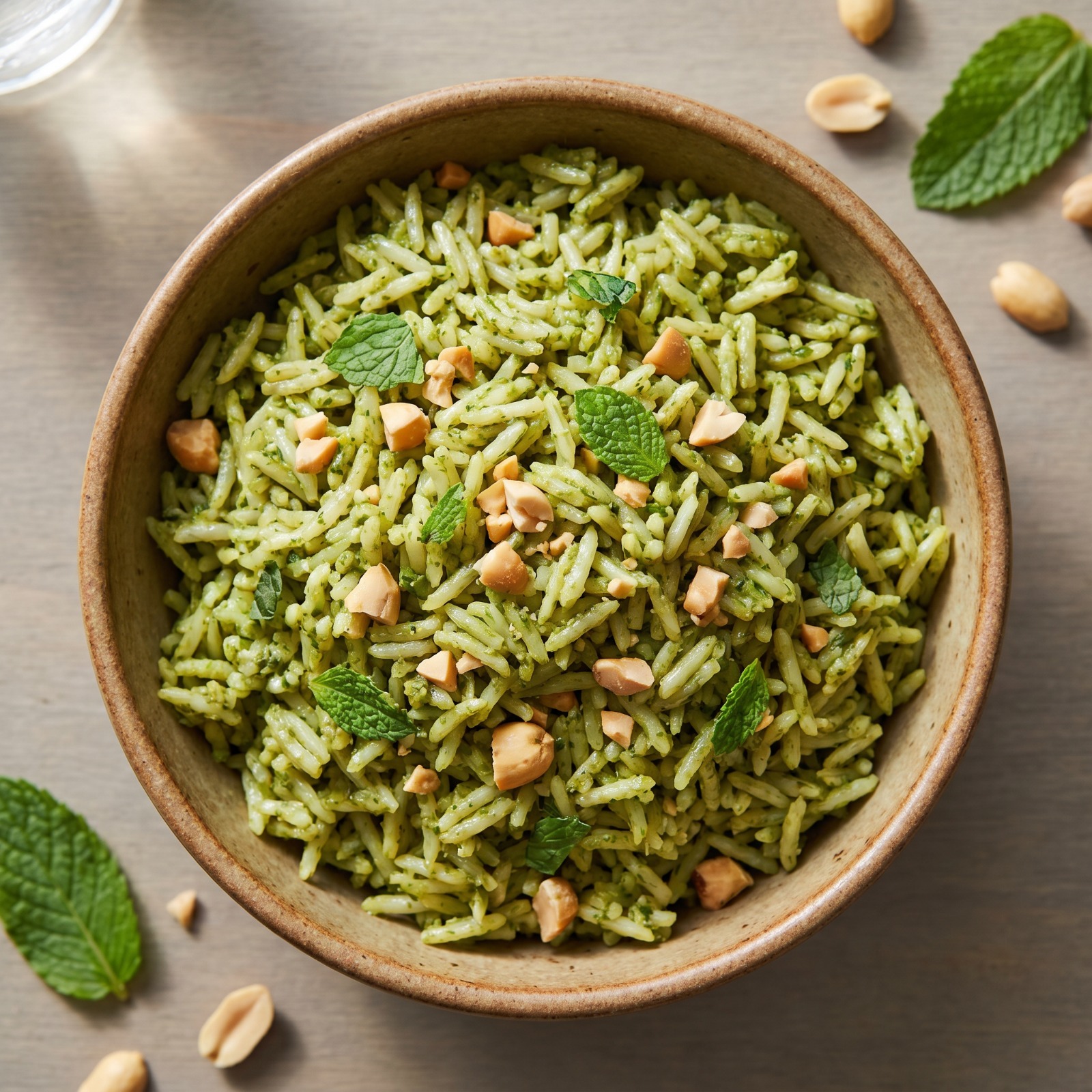 Grind mint, peanuts, chilli, and salt into a coarse paste.