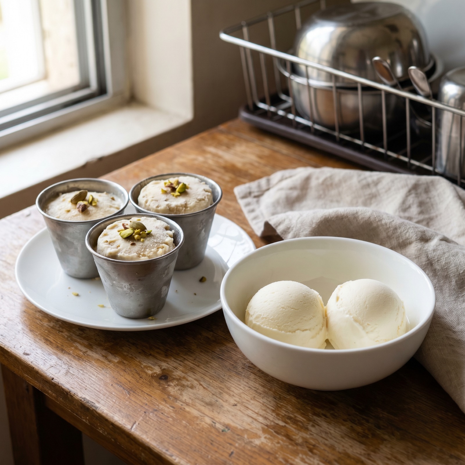 Texture-wise, they’re different too. Kulfi is meant to be dense. Slightly grainy even. That’s not a flaw. That’s how it’s supposed to feel.