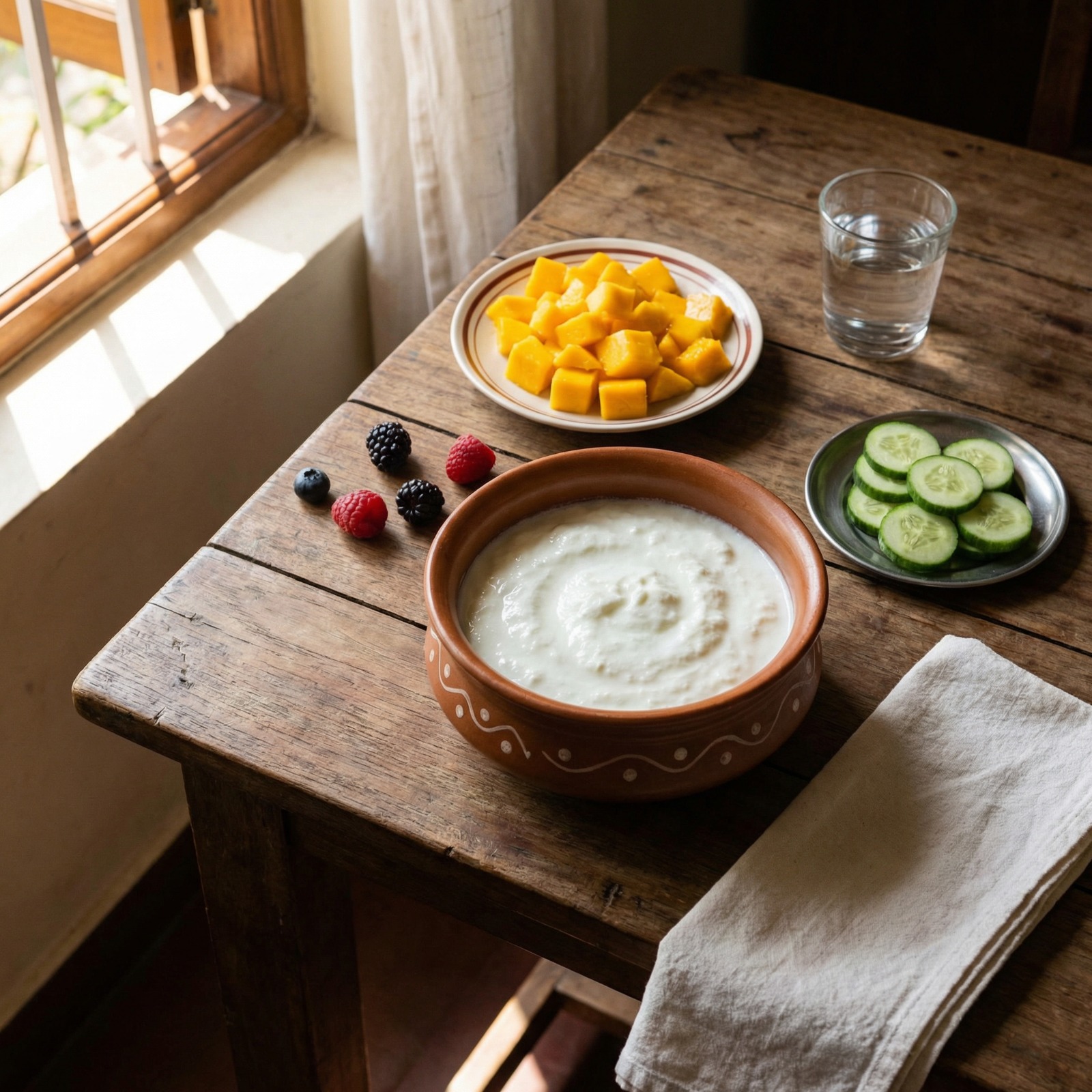 Curd is probably the easiest starting point. It cools the body and goes with almost anything.