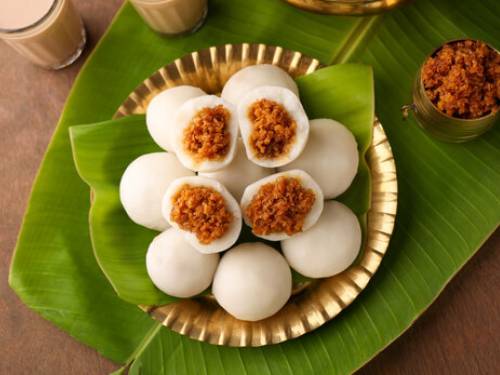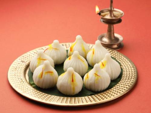 4.Steam : Put modaks in an ultra’s AISI 304 food grade Diet steamer lined with banana leaves or muslin cloth. Steam for 10–12 minutes until shiny.