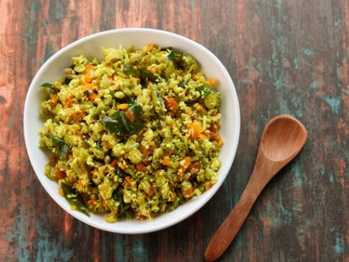 3.Add Coconut Mix: Add grated coconut blended with green chilies. Sauté in an uncovered pan for a few minutes.